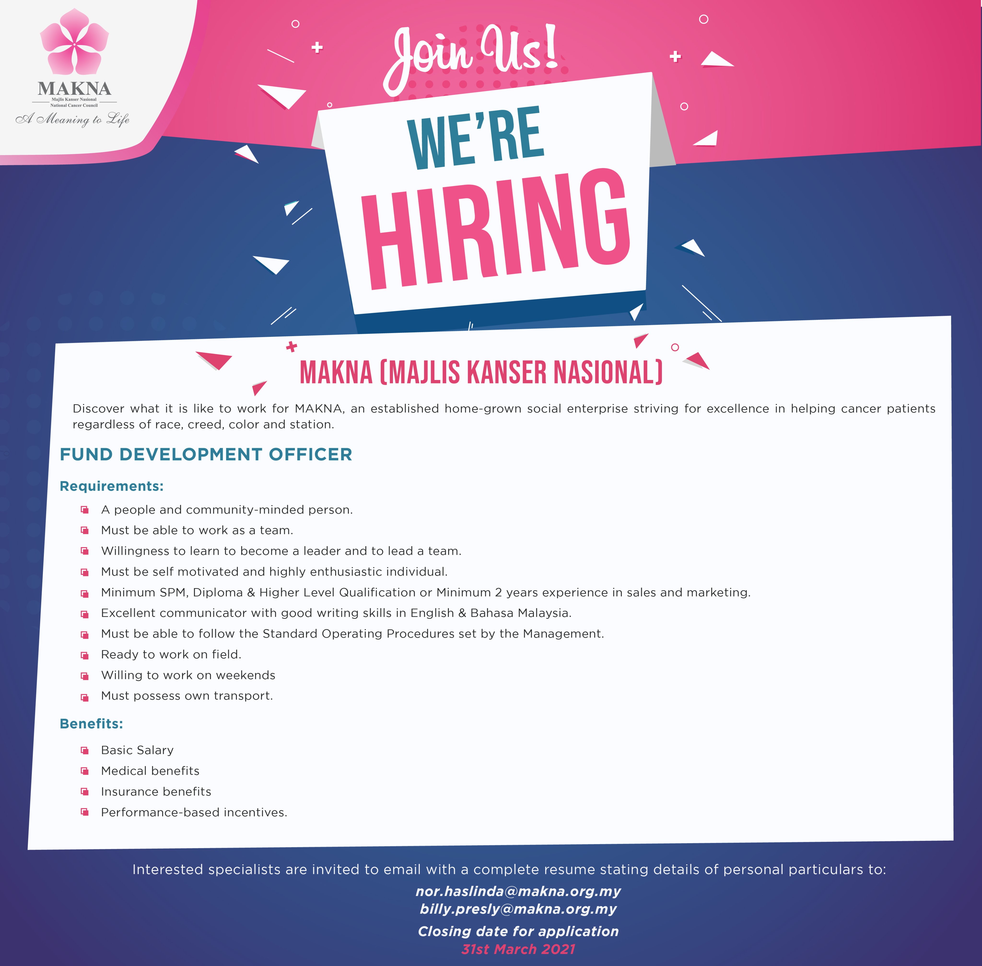 Makna Majlis Kanser Nasional On Twitter We Are Currently Seeking To Grow Our Organization So That We Can Reach Out To More People In Need Check Out Our Latest Vacancies And
